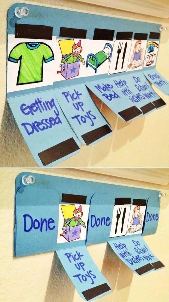 做一个任务孩子每完成一个任务,就让他自己把打开的“门”合上,这样,他们就会充满很强的参与感和成就感。